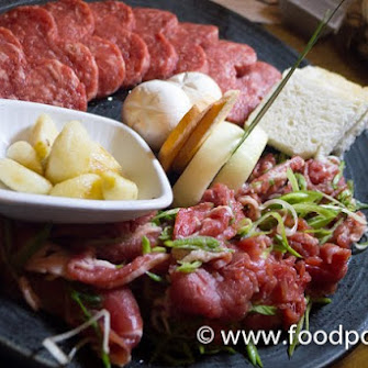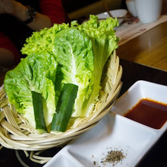 The special assorted Bulgogi combination of Unang-style (seasoned beef and hand-pressed into heart shapes) and Gwangyang-style Bulgogi (thinly sliced seasoned beef served with mushrooms, sweet potatoes, leeks and onions).
