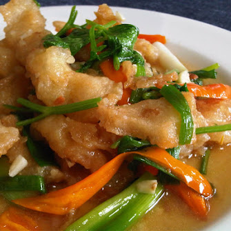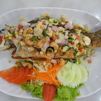 Fried fish with Herbs. spicy sauce (ปลาทอดสมุนไพร)