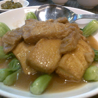 Braised Tofu with Tau Kan served with blanched Bak Choy