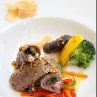 Teppanyaki Gyu Maki/ Teppanyaki Grilled Beef Striploin Roll with Enoki Mushrooms and Green Onions (铁板烤牛柳金针菇与大葱)