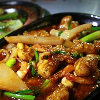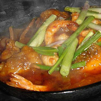 Sam Sin "three seafood" on sizzling plate