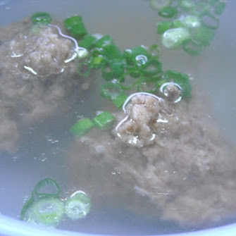 Minced tender pork tendons/ginger balls in soup