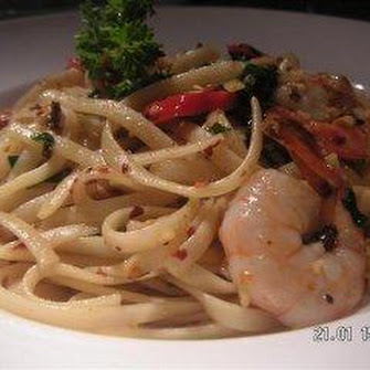 Prawn Linguine with Garlic and Red Chili