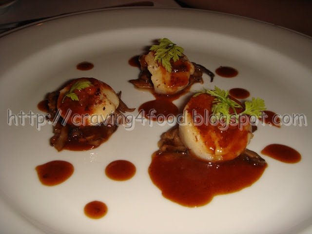 Coquilles St Jacques grillées et fricassée de champignons sauvages, sauce au Porto