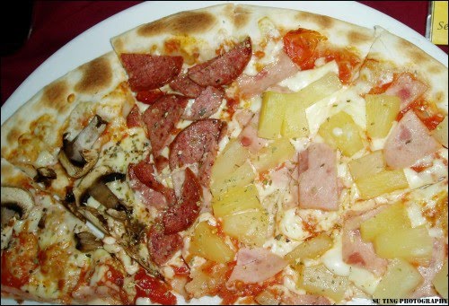 mushroom, pepperoni and hawaiian Pizza