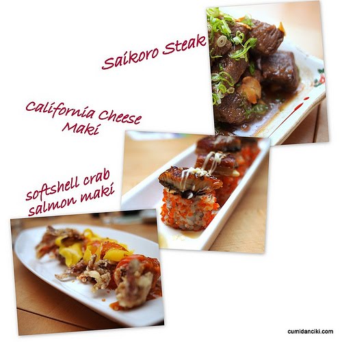 Saikoro Steak, California Cheese Maki, Softshell Crab Salmon Maki