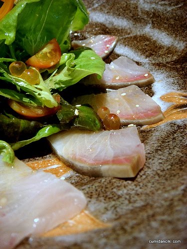 Sea bream carpaccio with tomato tartare and Tiger Crystal reduction