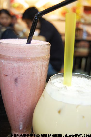 Fresh Strawberry Milk (鲜草莓牛奶) and Red Pearl Milk Tea (珍珠红奶茶)