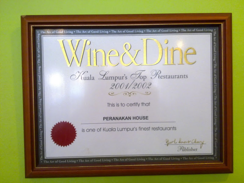 Awarded for KL Top Restaurant in 2001/2002