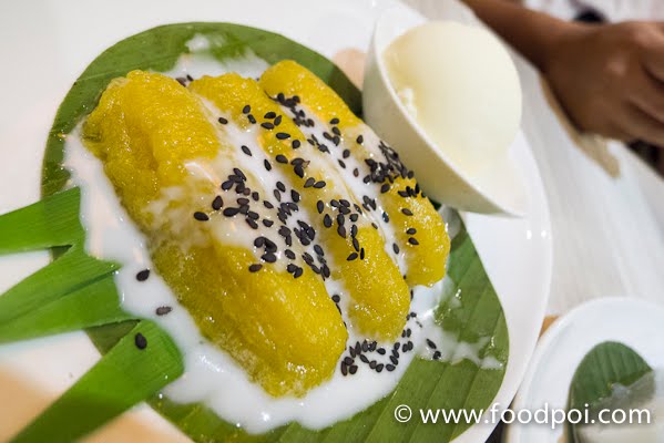 Mango Sticky Rice topped with coconut milk