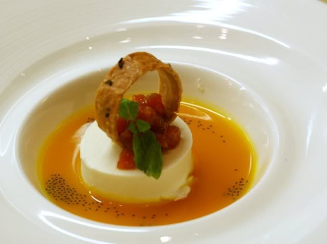 Chilled alaska king crab leg, chili paste seafood skewer & brine momotaro tomato (阿拉斯加帝王蟹配海鲜桃太郎番茄)