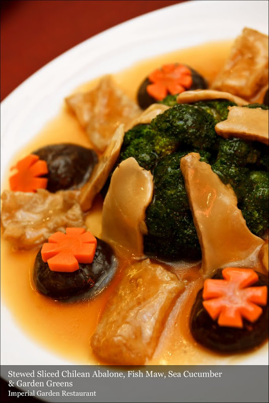 Stewed Sliced Chilean Abaloan, Fish Maw, Sea Cucumber & Garden Greens