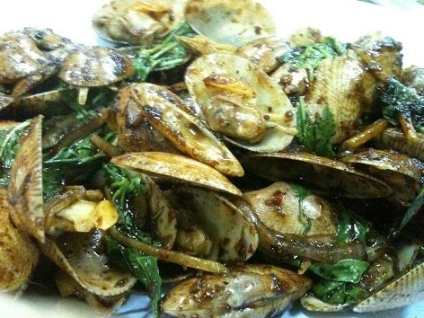 Clams cooked with "kam heong" leaves