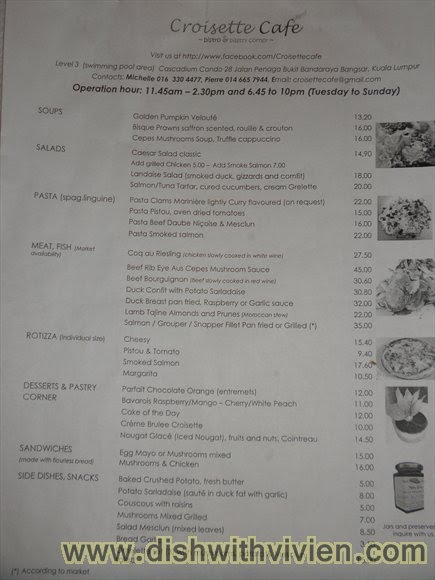 Croisette Cafe Menu