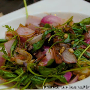 Rocket Salad Tossed With Onions, Pine Nuts And Roast Pork