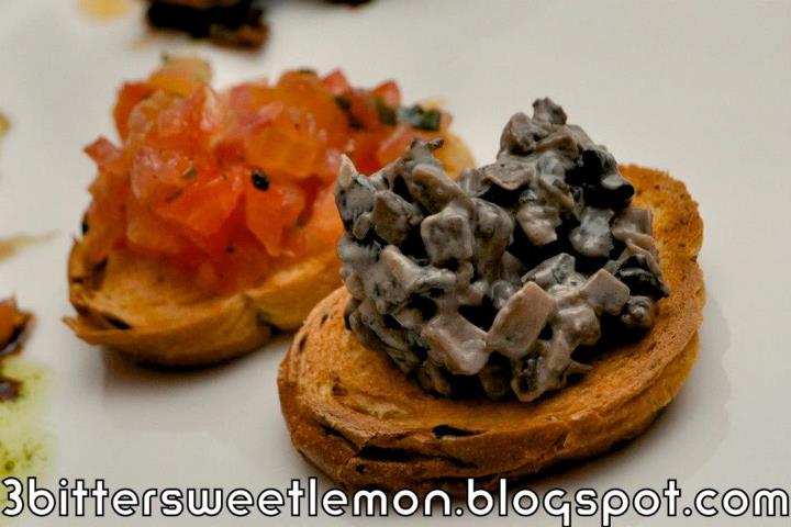 Bruschetta (smoked salmon, tomato salsa, buffalo mozzarella and porcini ragoût)