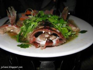 Poached grass prawn with a special sauce