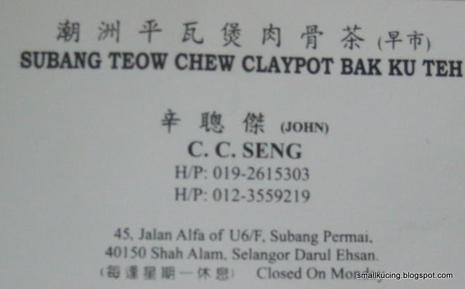 Subang Teow Chew Claypot Bak Kut Teh 潮州平瓦煲肉骨茶