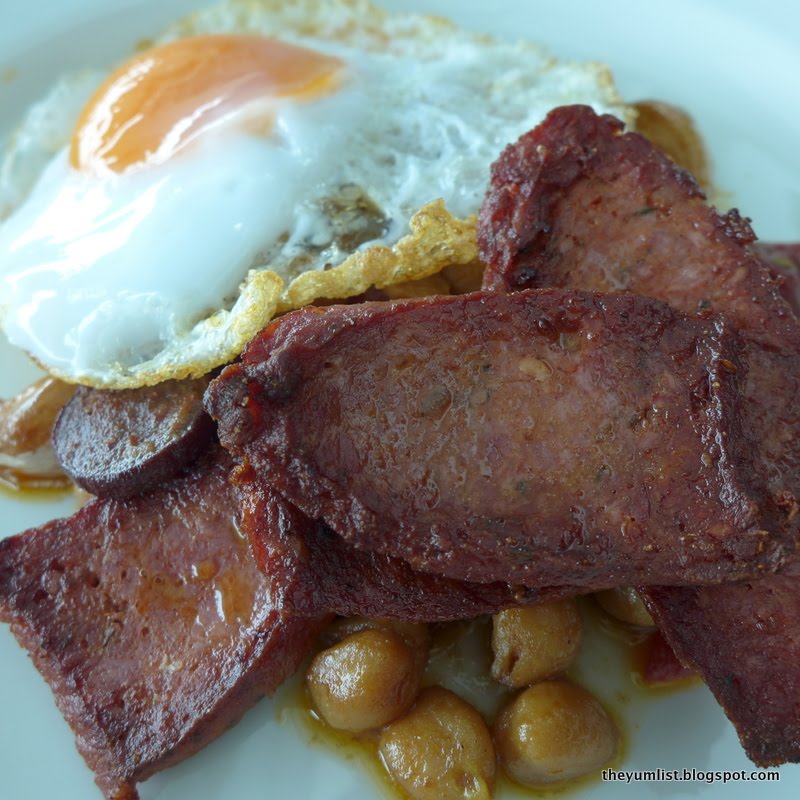 Chorizo Sausage with Chickpeas, Piquillo Peppers, Fried Duck Egg and Garlic