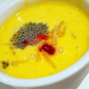 Fresh Mango Sago Pomelo Soup with Mango Ice-Cream and Coconut Pudding