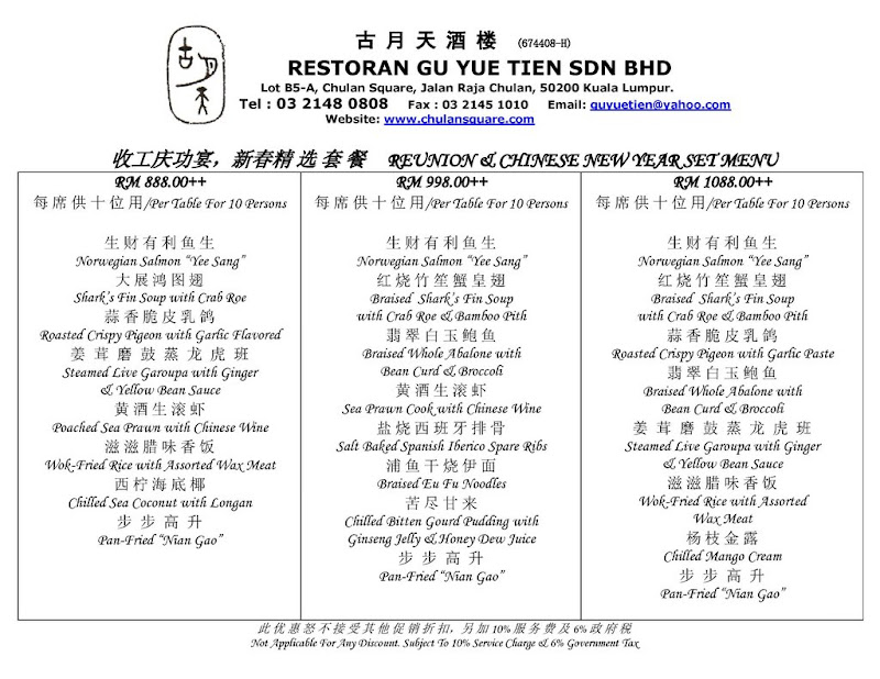 Gu Yue Tien Menu
