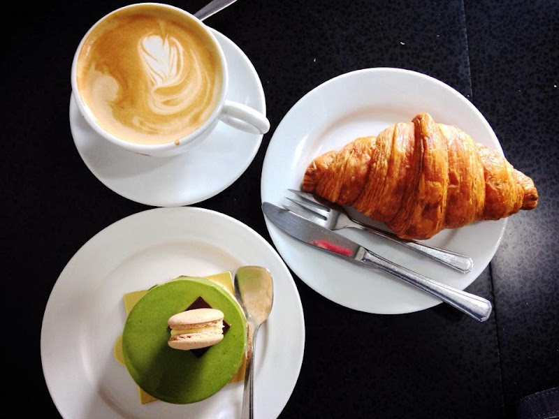 Coffee. Plain croissants And Cake
