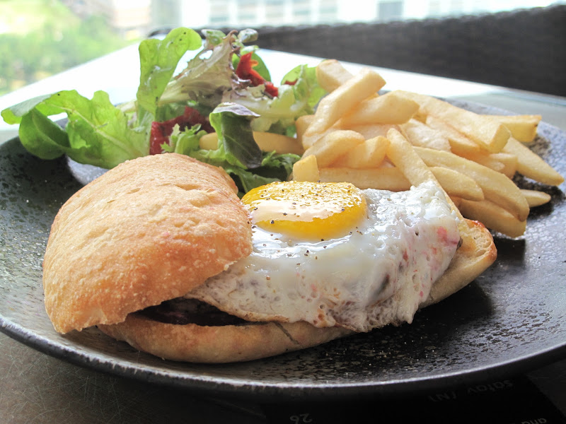 Grilled Australian Sirloin Burger with a Fried Egg and Beetroot