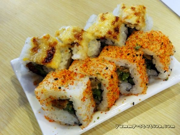 Mixed Mayo Maki (Assorted Fish with Mayo) and Chicken Katsu Maki (Fried Chicken Cutlet, Cucumber and Ebiko)