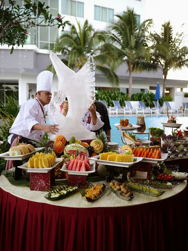 海鲜的选择有大虾、生蚝、青蚝、蛤蜊、小龙虾和肉类等等的食材