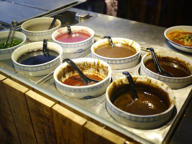 共有七种酱料选择如怡保红酱、吉隆坡咸酱、 吉隆坡甜酱、槟城虾膏酱、青辣椒酱清、 后巷香辣酱和咖哩酱