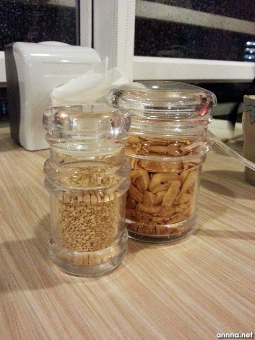 Sesame seeds and garlic flakes