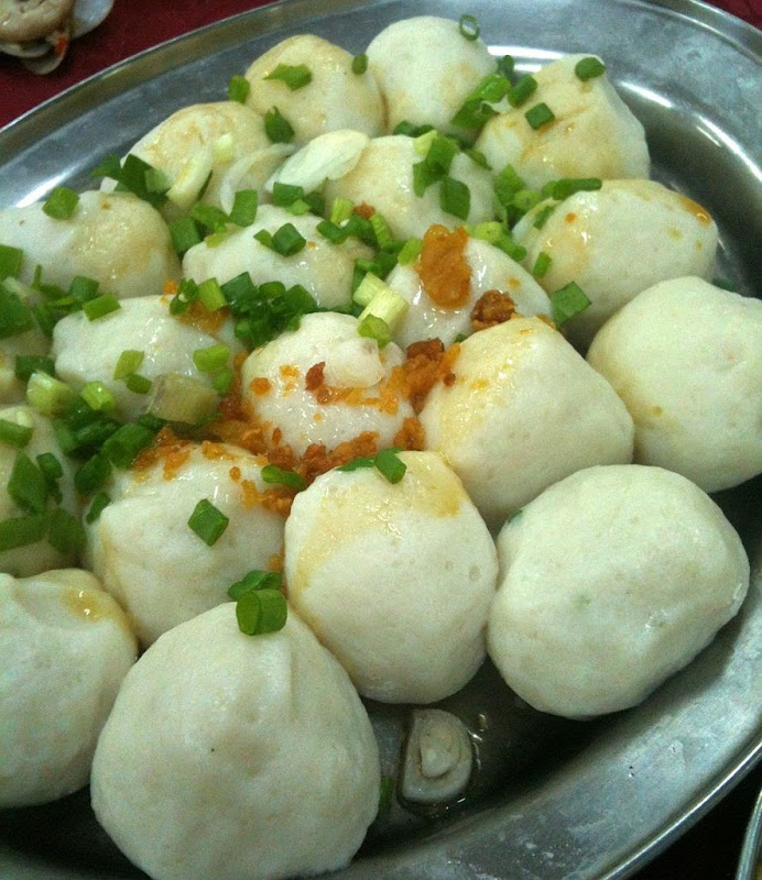 Steamed big, white springy fish balls