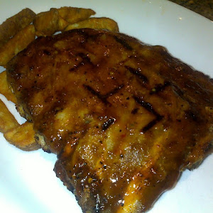 1/2 slab of well marinated and grilled BBQ baby pork ribs served with potatoes wedges