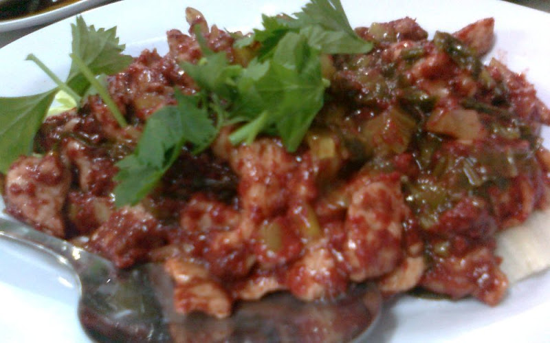 Stir fried red wine paste with pork and salted vegetable