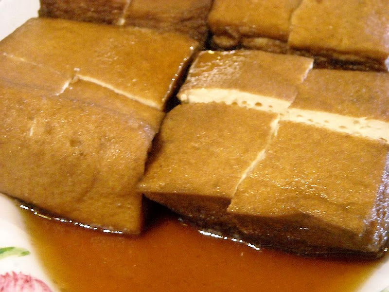 Pillowy soft square Tofu (beancurd) pot stewed with the gravy from the braised duck
