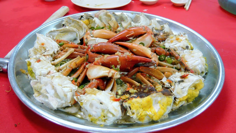 Steamed Flower Crab also garnished with Bird's Eye Chillies for extra kick