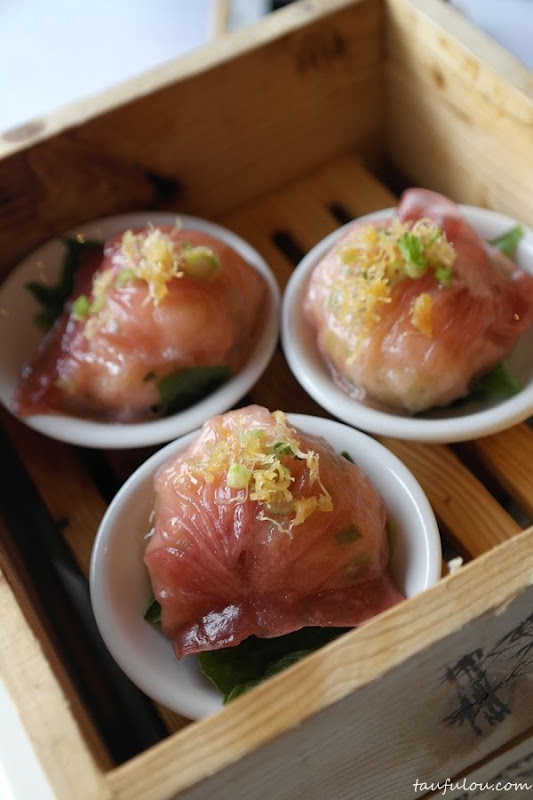 Steamed Grouper Dumpling with Century Egg and Asparagus in Vinegar Soya
