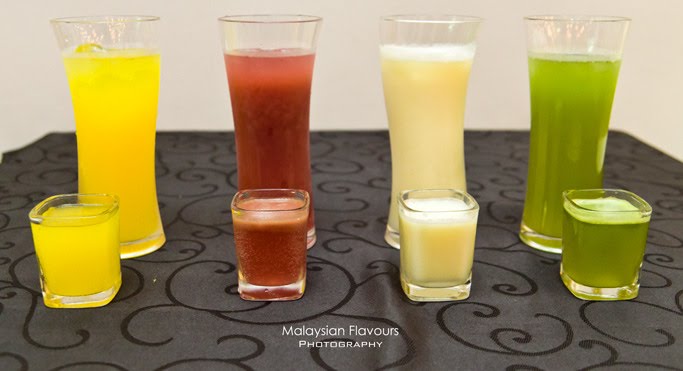 Tropical Sunrise, Peachy Passion, Kesar Sikanji (lemon juice with saffron), or Jaljeera (tangy juice with herbs and spices)