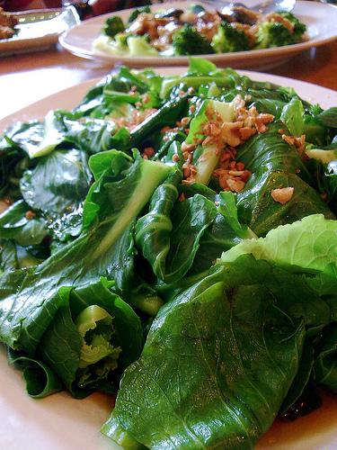 Boiled julienned jicama/yambean wrapped in lettuce (like the Nyonya style of Joo Hoo Char), Sambal Prawns, Signature Crispy Fried Chicken and Siew Bak Choy