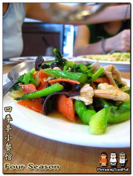 Stir Fried Vege "Kailan" With Prawns, Fishcake & Pork