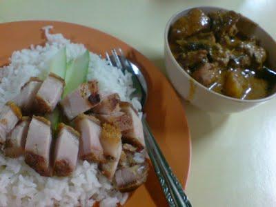 Roast Pork + Curry Chicken rice