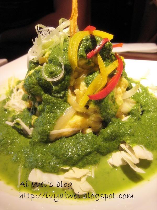 Steam Pork Meat with spinach sauce