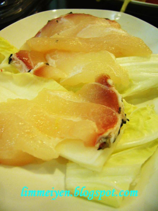 Another salad course was presented in a myriad of colours! Garden greens with Salmon, Tuna, flying fish roe and avocado served with wasabi mayo dressing. The addition of crunchy fried crab stick certainly a brilliant touch!