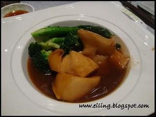 Braised Abalone with Sea Cucumber and Dried Oyster with Vegetables (鲍鱼海参发财沙井蚝士蔬)