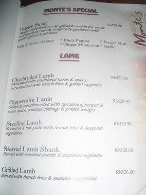 Lamb Menu