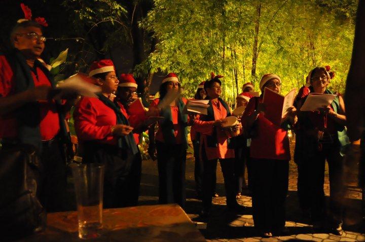 christmas carolers at HIDE Cafe