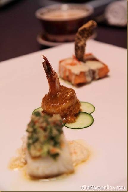 Wok Fried Omega Egg with Curry Flavour, Australian Scallop, prawn and garden vegetables 碧綠滑蛋抄咖喱雙鮮