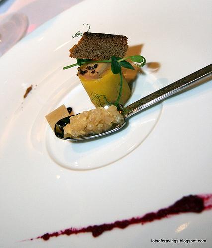 Double Boiled Chicken Consomme, Rosemary Semolina Dumpling, Slow Poached Foie Gras on Chicken Ragout