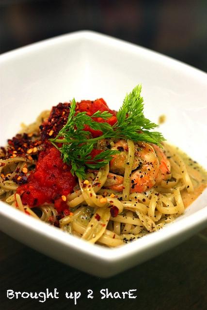 Prawn Pasta With Spiced Cream And Basil Pesto
