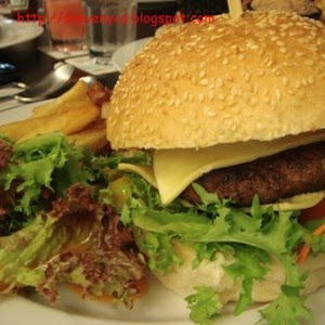 Beef Cheese Burger served with salad and fries
